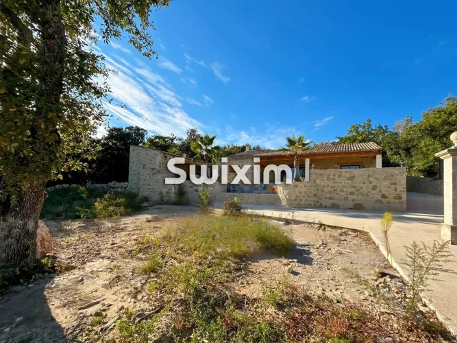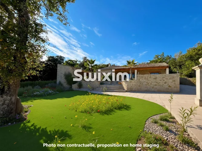 Ref: 2358FB. Goudargues area. Nestled in a natural environment, this villa combines the charm of stone with contemporary design. Located in a typical Cèze Valley village, just a stone's throw from the river, it offers a rare and peaceful living environment. Elegantly designed, the house features generous volumes and plenty of natural light. The 70 m² living room opens onto an unoverlooked panoramic view, creating a true indoor/outdoor continuity. It also features :