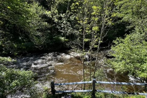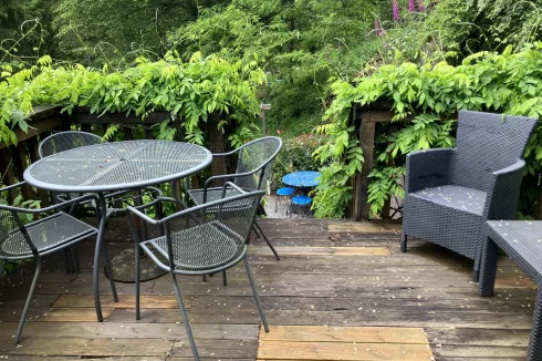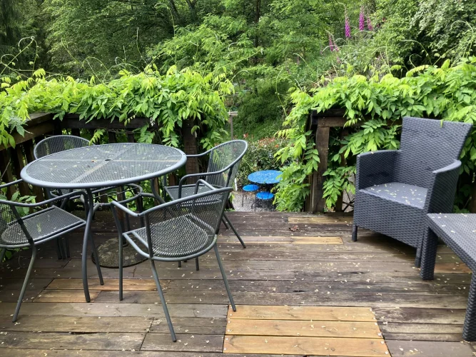 The gardens sweep along the river, with stream inlets running under small bridges throughout the grounds, terrace areas provide outdoor dining space and there are many tranquil areas to sit and take in the incredible river and location. The area is surrounded by high trees giving not only a sense of forest living but also privacy.