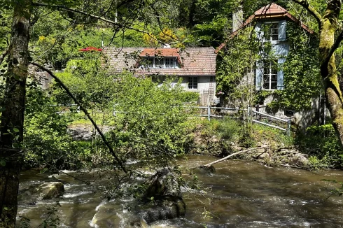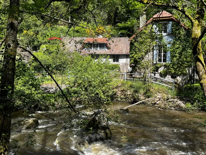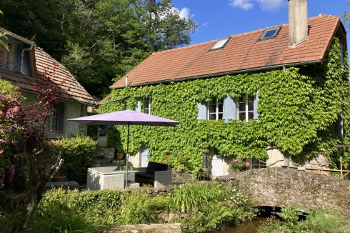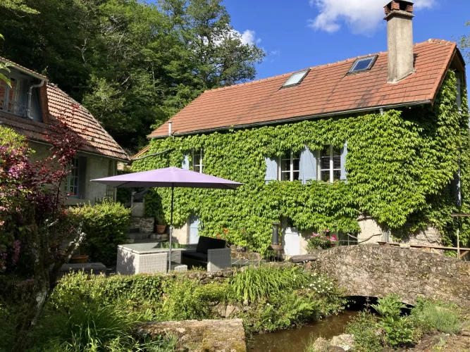 Some locations just ooze beauty, the setting of this gorgeous mill house plus cottage right on the river is one of them. Situated in Crozant in the Limousin, on the banks of the river Sedelle, in the ‘ Valley of the Painters’ is a recently fully refurbished and extended 19th century watermill over three floors.