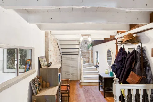 On the ground floor you’ll find a spacious living room and kitchen, while a cosy mezzanine lounge of 30 m² offers the perfect retreat – or could easily be transformed into a large bedroom with dressing.