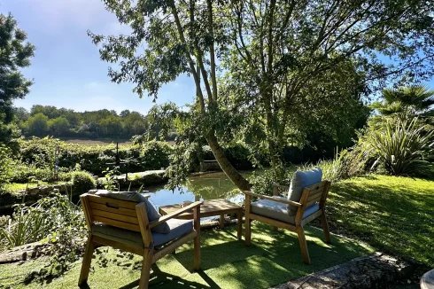 Step outside and you will immediately fall in love with the enchanting garden, full of inviting corners to relax by the water’s edge. Whether it’s swimming in the river, fishing, or simply enjoying the peaceful setting – it’s all possible here.